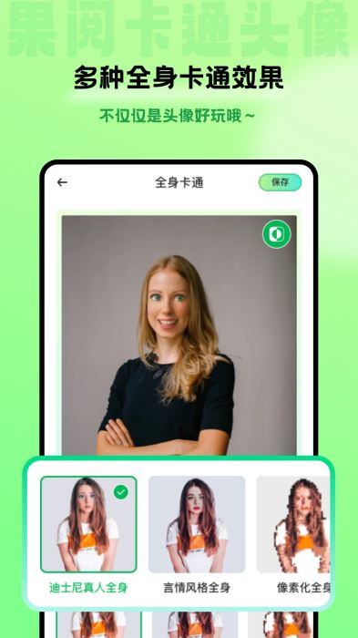 果阅卡通头像卡通照片编辑器提供了您需要的所有出色的图片编辑工具。首先,从您的相册中选择一张精美的照片,或者使用果阅卡通头像的卡通相机自拍。使用果阅卡通头像调整图片大小,无需裁剪。探索精美的卡通滤镜来将照片变成卡通形象!
