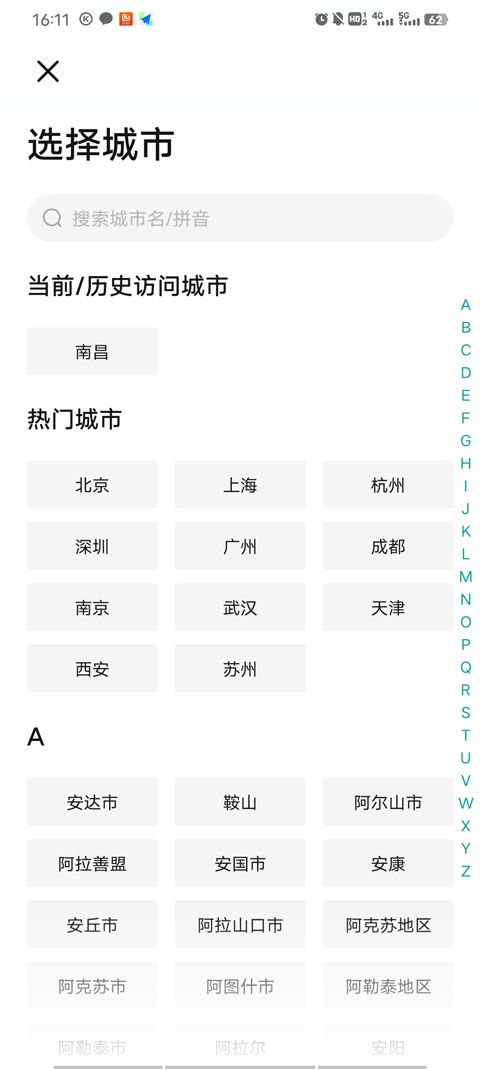 2、点击切换城市。
