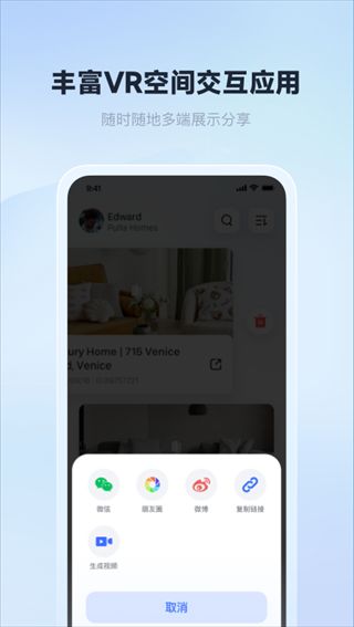 如视VR app是一款简单便捷的VR模型采集神器,只需要搭配全景相机,就能轻松简单采集。采集处理后生成VR实景,能够获得连贯沉浸的VR空间游览体验。软件也会自动生成并可供浏览、分享、营销使用的VR链接,让用户获得在VR场景内的沉浸式观览体验。有需要的朋友可在本站下载使用!