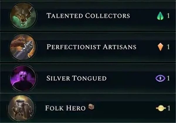 · 巧舌如簧(silver tongued):【效果】(缺);【初始奖励】(缺);【其他】需通过万神殿解锁。