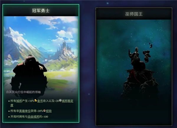 城邦+10%金币收入和+20城邦稳定度;非英雄单位+20%经验加成;自由城邦邦+100友好度。