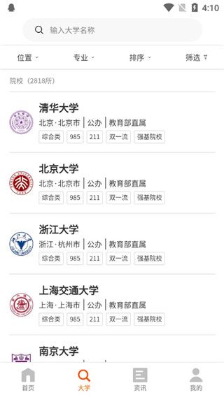 4、而若是用户们对某一所大学感兴趣的话,那么你可以直接点击大学界面,进行最为直观的了解;