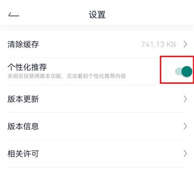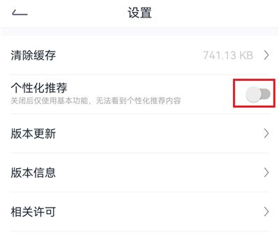 3、变成灰色的说明已经关闭了,关闭之后不能看到个性化推荐内容。